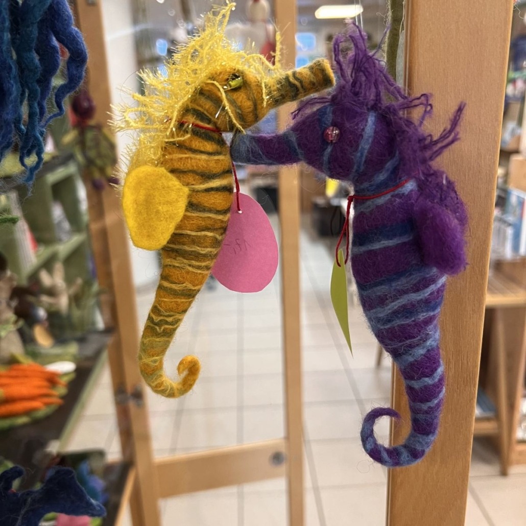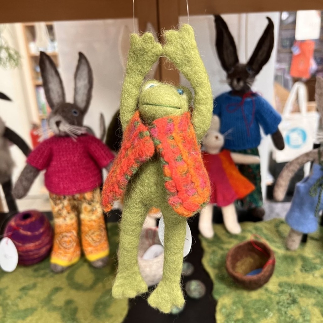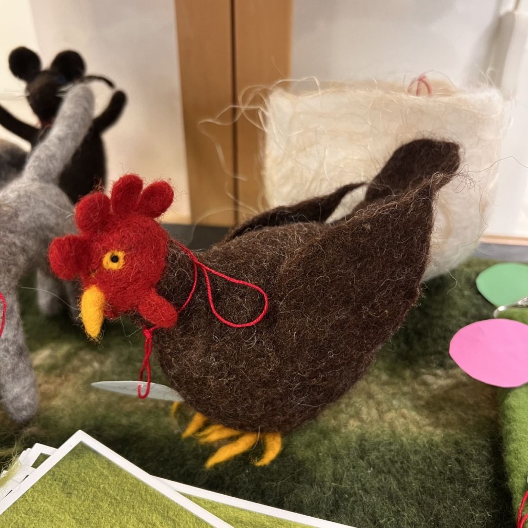 Gabriele Conen filzt für ihr Leben gerne. Alleine, mit Kindern, mit Erwachsenen. Zuhause, in ihrer Werkstatt, im Kindergarten oder in der Schule. Und nun hat sie eine Ausstellung in der Vitrine der Bücherträume, wo Ihr ab sofort kreative Filzgeschenkideen findet. Verschiedene Tiere und Figuren eignen sich für alle Jahreszeiten und besonders zu Ostern gibt es natürlich auch Hasen und Hühner für die passende Deko.